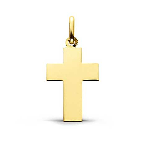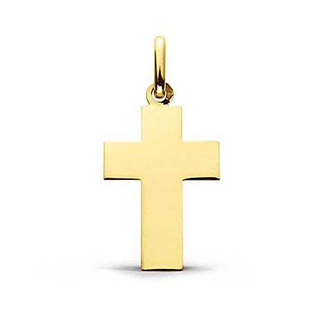 Cette croix au fini poli brillant est en Or Jaune 18 carats.