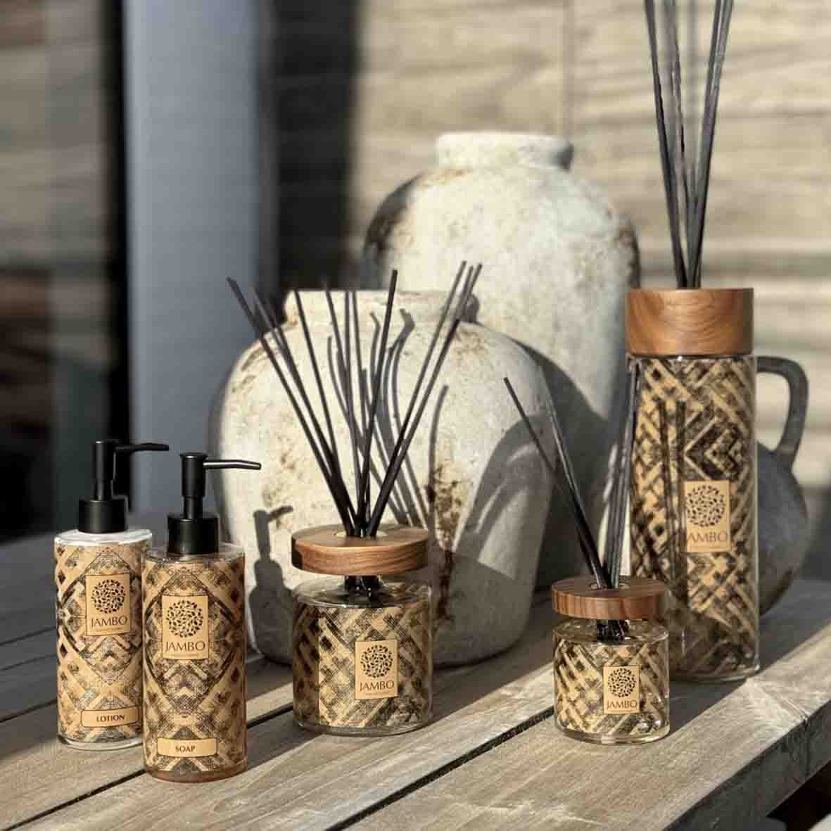 Oui, l’engagement écologique est au cœur de la philosophie de Jambo Collections. Nous privilégions les matières premières naturelles, comme le bois plein pour les bouchons et le rotin d’Indonésie. Nos flacons en verre design sont conçus pour être rechargés à l’infini, réduisant ainsi les déchets. De plus, tous nos emballages sont fabriqués à partir de matériaux recyclables, affirmant notre démarche écoresponsable.