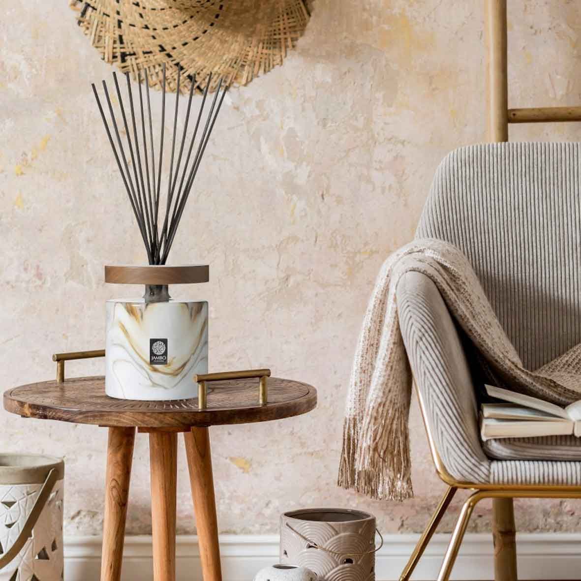 Invitez la nature et la chaleur dans votre intérieur avec le diffuseur de parfum Namadgi, une création envoûtante de la Jambo Exclusivo Collection.