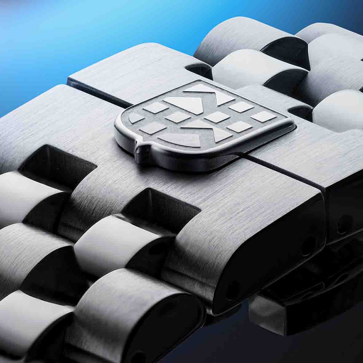 Le bracelet acier cinq mailles alterne finitions brossée et polie pour un style résolument moderne et robuste. Doté d'une boucle déployante, il offre confort et sécurité au quotidien.