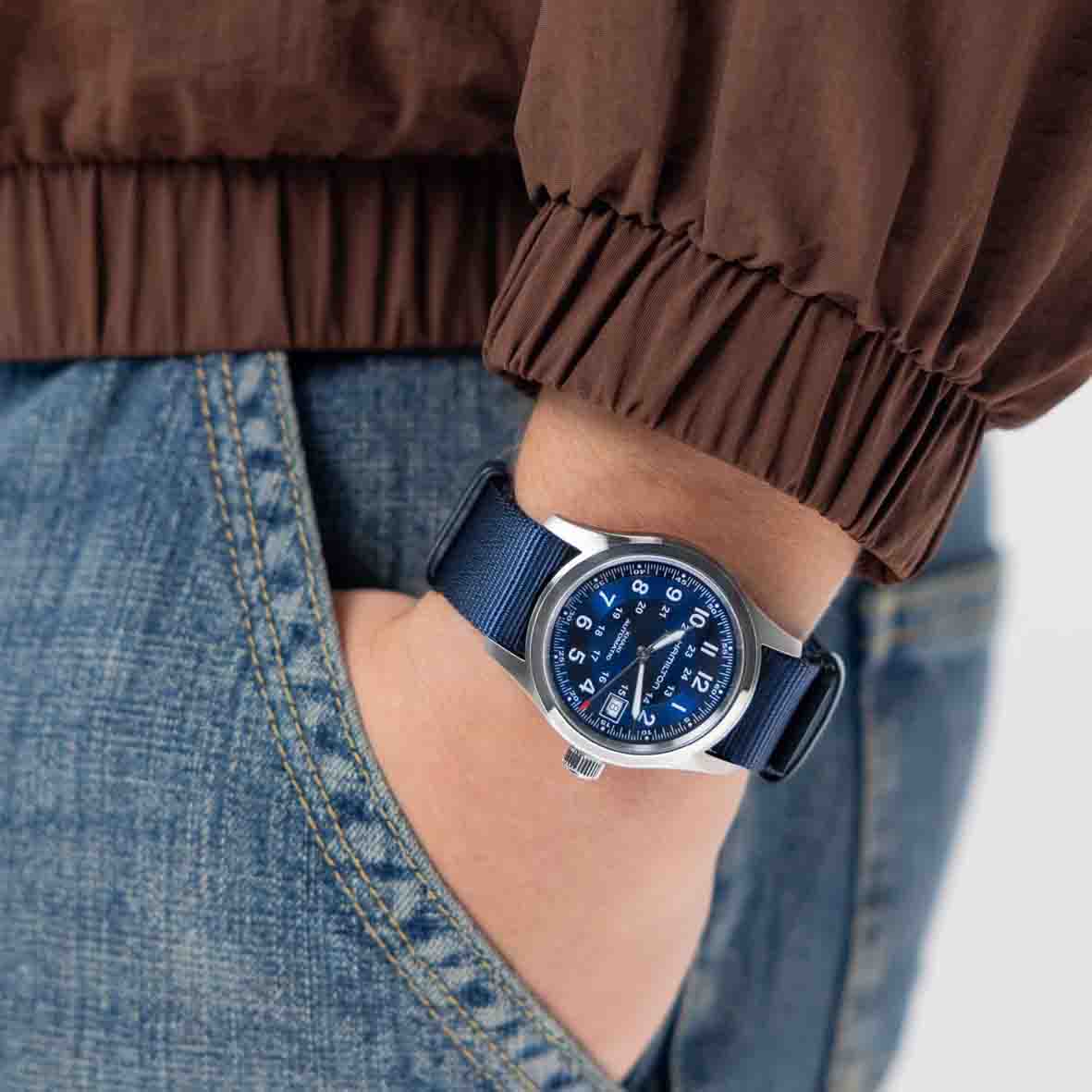 Fidèle à ses racines militaires, la Khaki Field Auto 38 mm est bien plus qu'une montre : c'est un compagnon fiable pour l'action comme pour les occasions formelles.