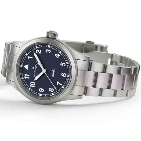 Inspirée par la réputation de Hamilton en matière de précision, d’innovation et de design fonctionnel, la Khaki Field Quartz associe un cadran bleu marine classique de 38 mm à un bracelet en métal moderne.