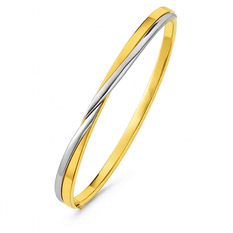Révélez l'éclat de votre poignet avec ce magnifique jonc en or bicolore, une pièce de joaillerie qui allie modernité et raffinement intemporel.