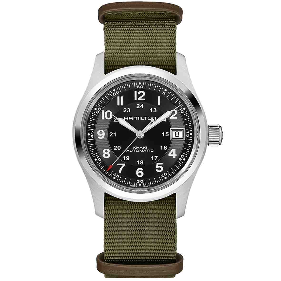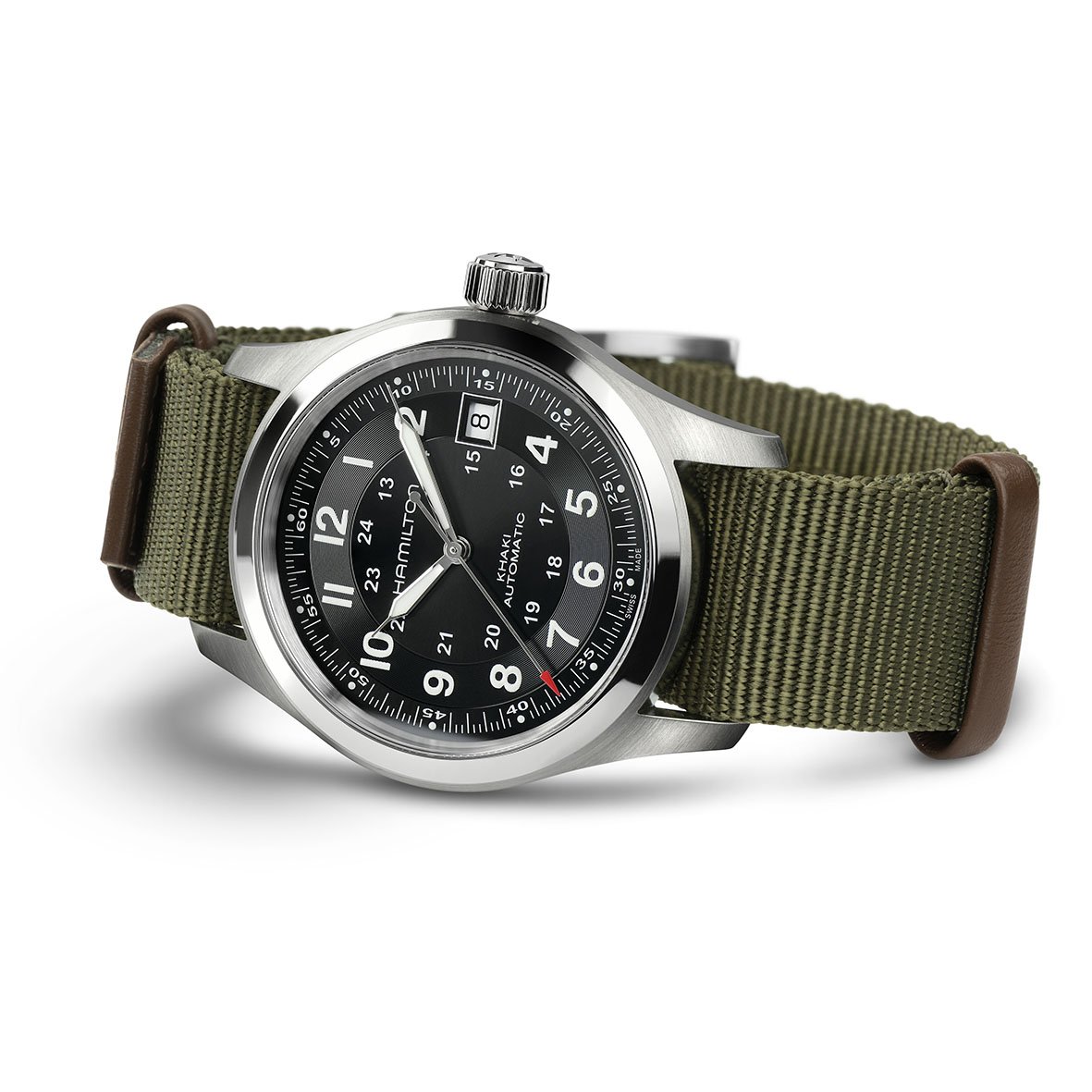 Un bracelet NATO vert kaki robuste vient renforcer son côté pratique, tandis que le mouvement automatique H-10 offre une réserve de marche de 80 heures, adaptée à toutes les missions.