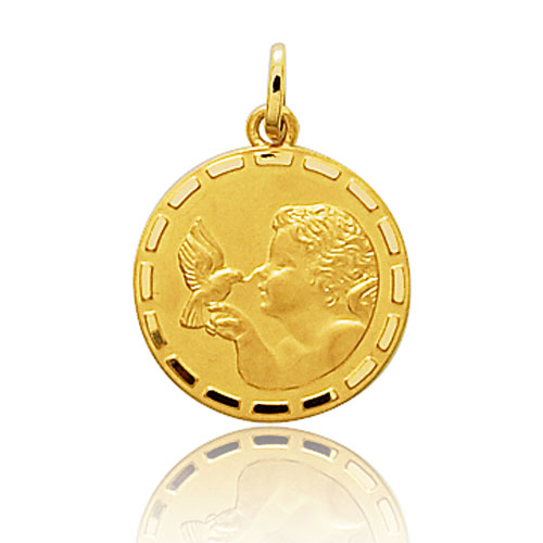 Elle représente un angelot qui tient une colombe sur son doigt.