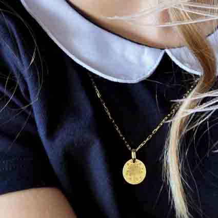 Cette médaille ronde est en Or jaune de 18 ou 9 carats.