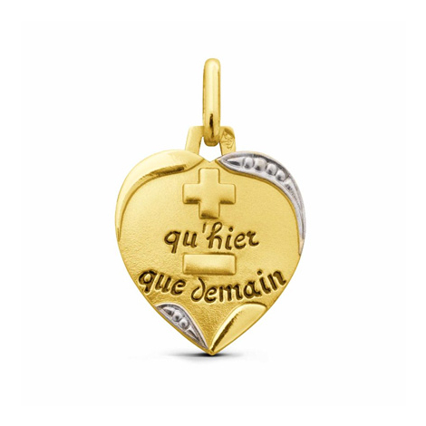 Cette médaille en forme de cœur est en Or Jaune 18 carats à la finition satinée.