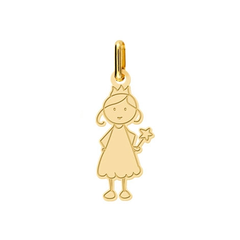 Pendentif représentant une fée avec une couronne prenant dans une main une baguette magique.