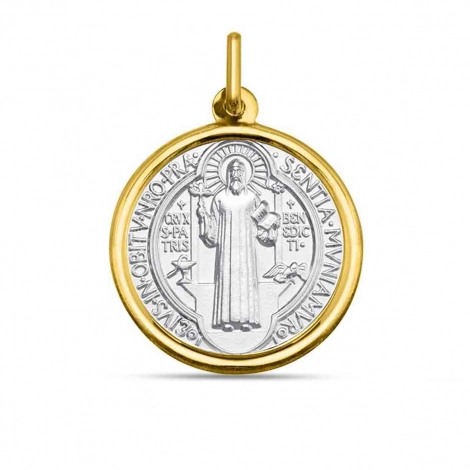 Cette médaille représentant Saint Benoît est en or jaune et or blanc 18 carats.