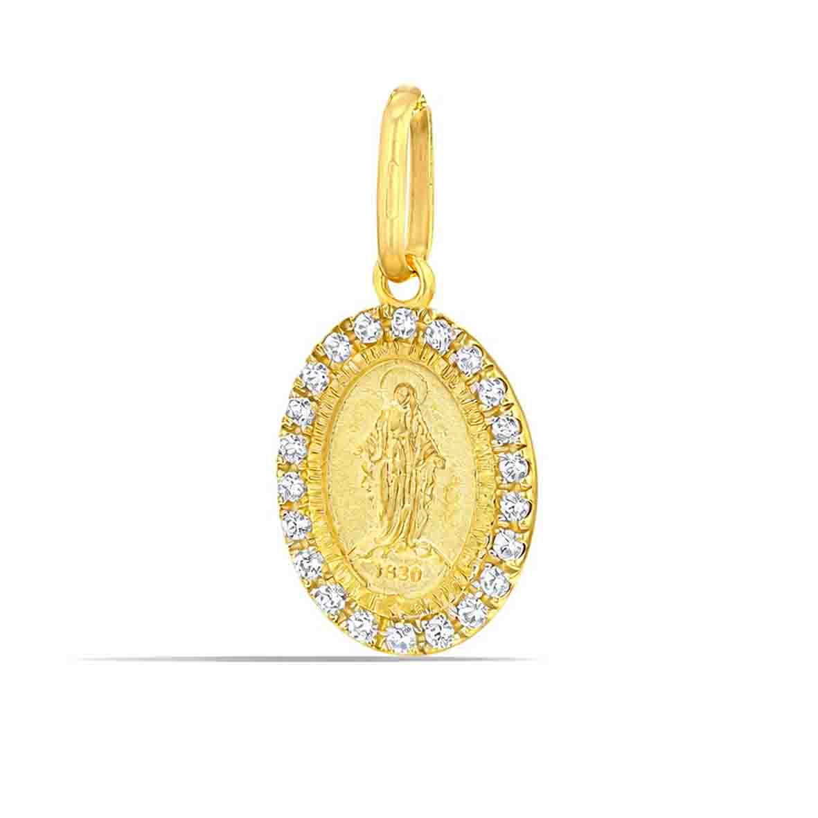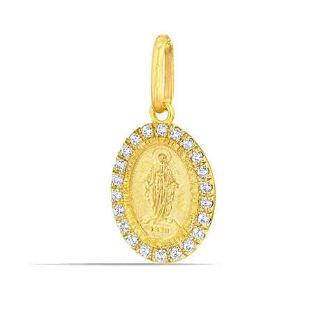 Médaille Sainte Marie en Or Jaune 9 Carats à l'Entourage Scintillant