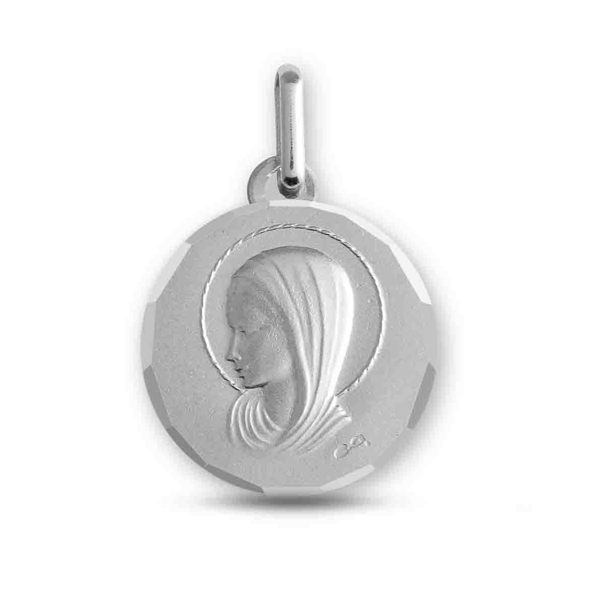 Cette médaille de forme ronde est un grand classique de la vierge auréolée.