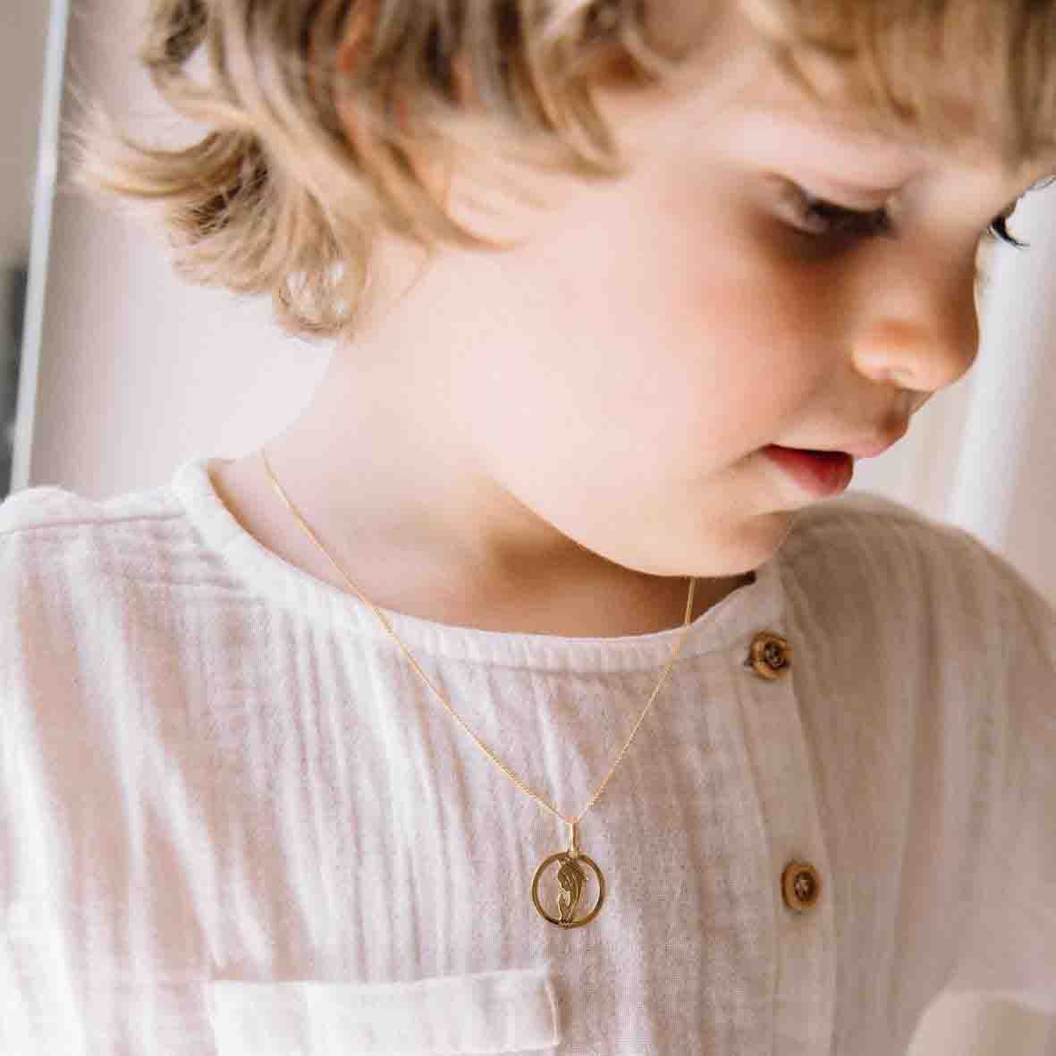 Cette médaille de baptême peut être portée sans chaîne ou accompagnée de l'une de nos chaînes en or 18 carats : maille forçat classique, maille forçat ronde ou maille gourmette. La tradition veut que le parrain complète ce bijou en choisissant la chaîne, formant ainsi un ensemble harmonieux et personnel. Unisexe, cette médaille religieuse convient aussi bien aux petites filles qu'aux petits garçons.