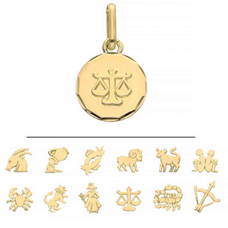 Médaille ronde en or jaune 9 & 18 carats avec motif Signe du Zodiaque..