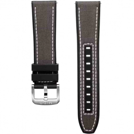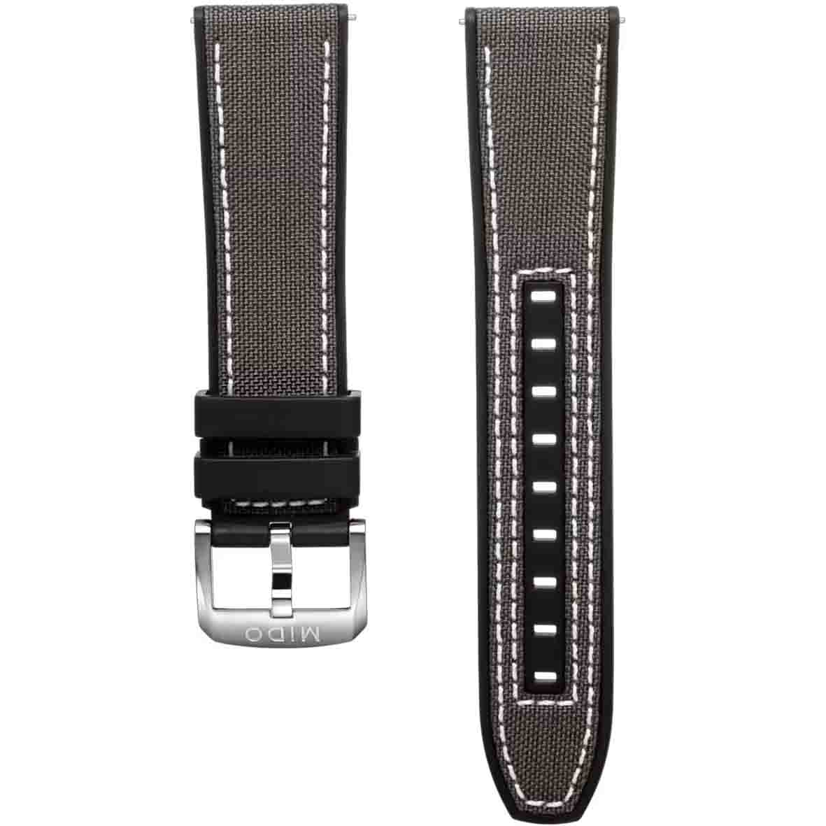 Bracelet caoutchouc et tissu gris 22mm Mido