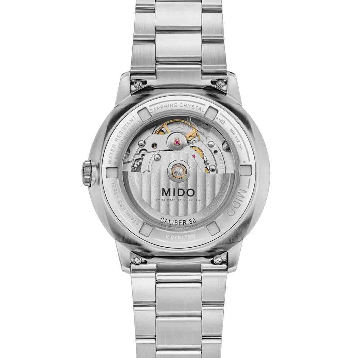 - Le Calibre 80 de Mido est réputé pour sa réserve de marche exceptionnelle de 80 heures. Cela signifie que la montre peut fonctionner sans être portée ou remontée pendant près de trois jours, offrant une commodité supérieure à la majorité des mouvements automatiques traditionnels. De plus, il intègre le spiral Nivachron™ pour une précision et une résistance accrues aux chocs et magnétisme.