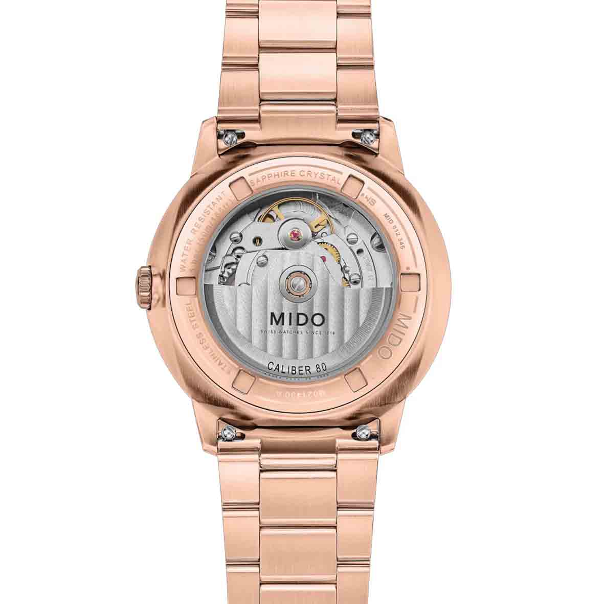 Quelle est la particularité du mouvement automatique Calibre 80 intégré à cette montre Mido pour homme ?