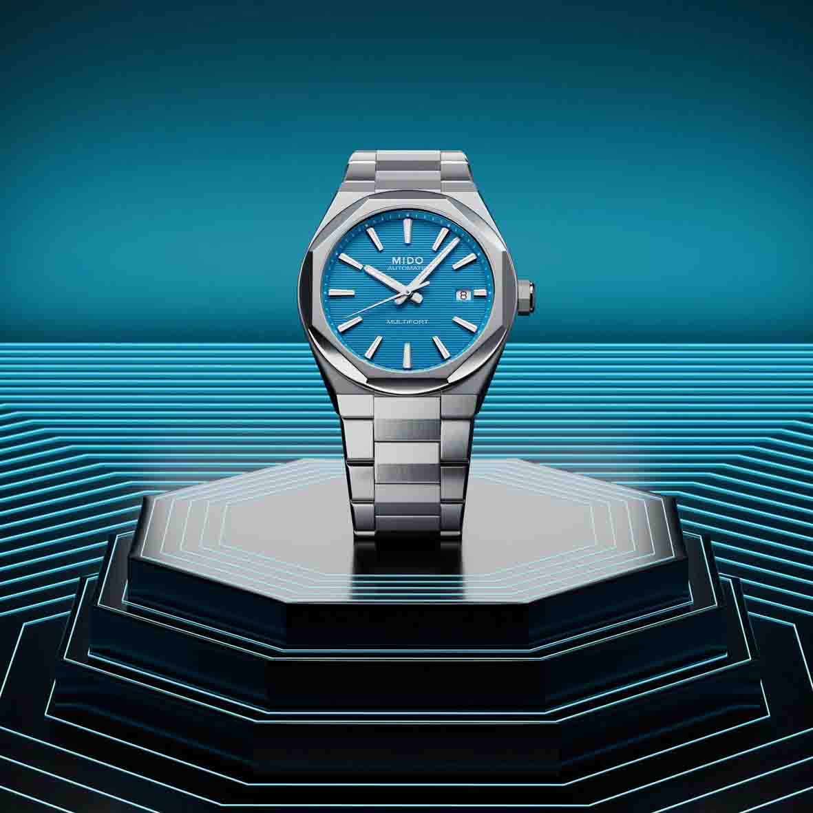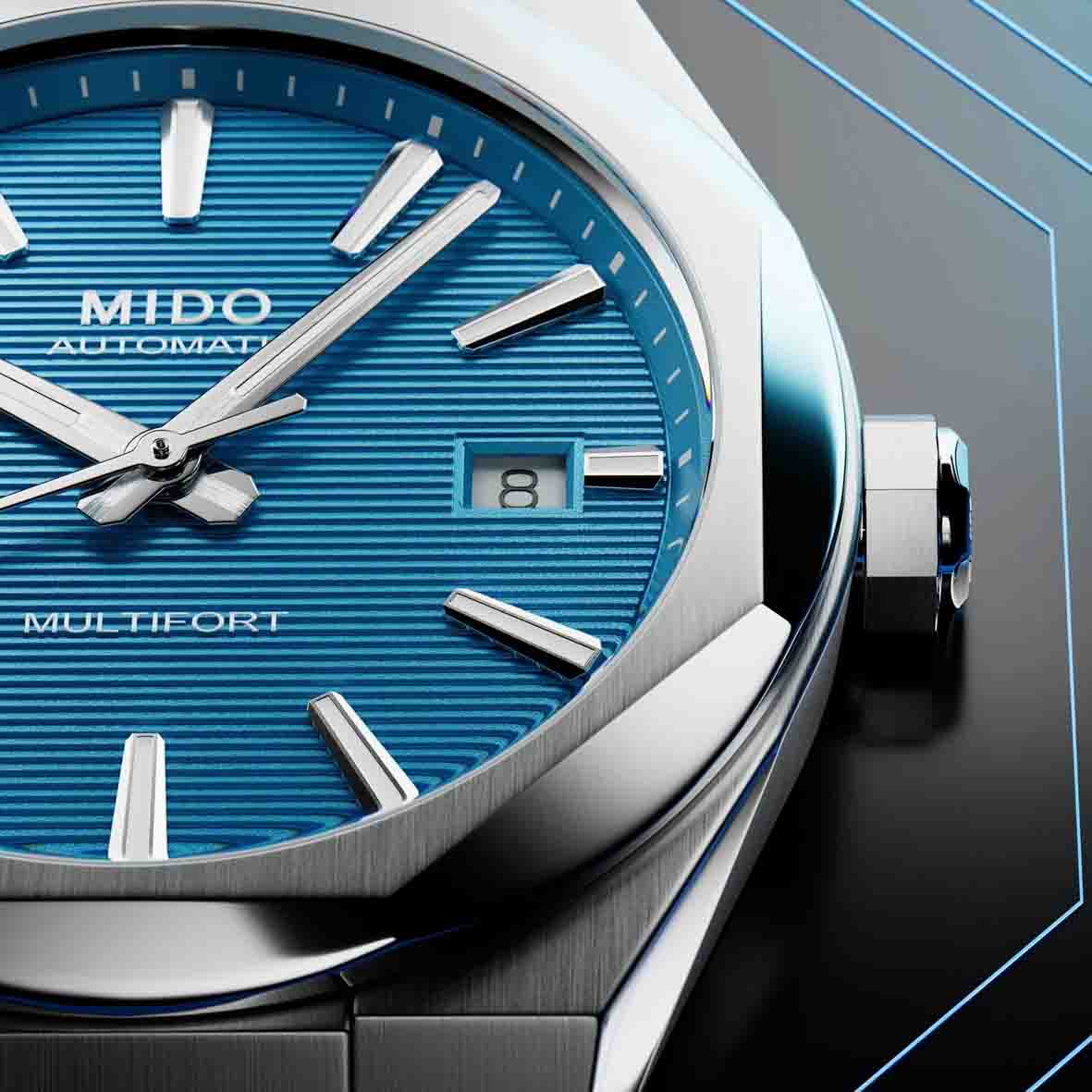 - La lunette octogonale de cette Mido Multifort est un élément de design très distinctif qui confère à la montre une esthétique contemporaine et audacieuse. Elle reflète la philosophie « TECHNOMETRY » de Mido, combinant une géométrie précise à une technologie horlogère de pointe.