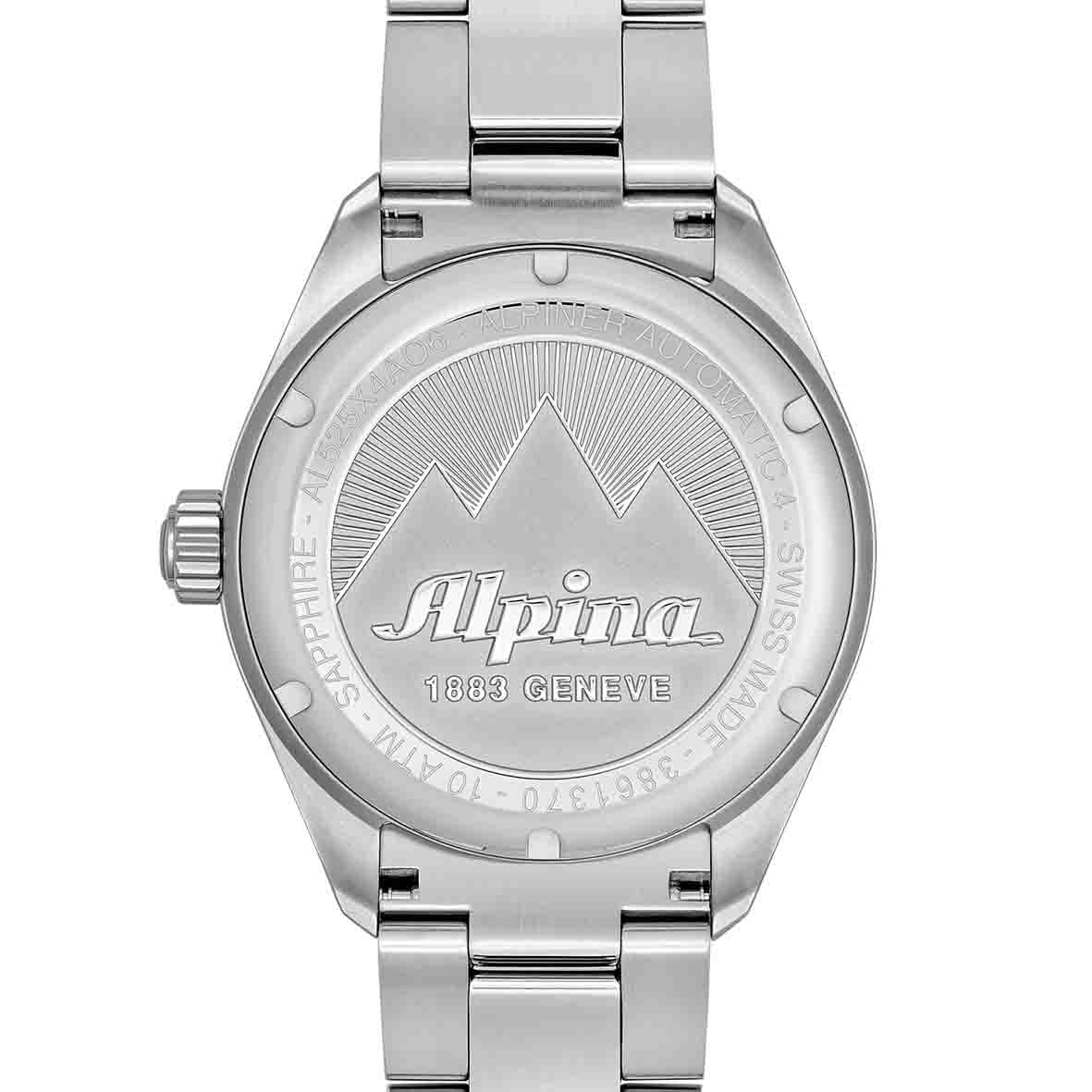 Le fond du boîtier vissé est gravé avec le motif Alpiner emblématique, ajoutant une touche de sophistication supplémentaire.