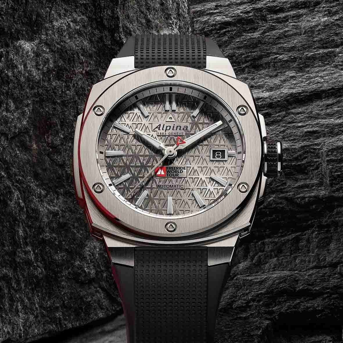 Cette édition spéciale Freeride World Tour arbore le logo emblématique du FWT sur le cadran et présente un motif exclusif gravé sur le fond du boîtier vissé. Elle représente neuf années de partenariat entre Alpina et le Freeride World Tour, incarnant l'esprit d'audace, de précision et de liberté partagé par ces deux univers.