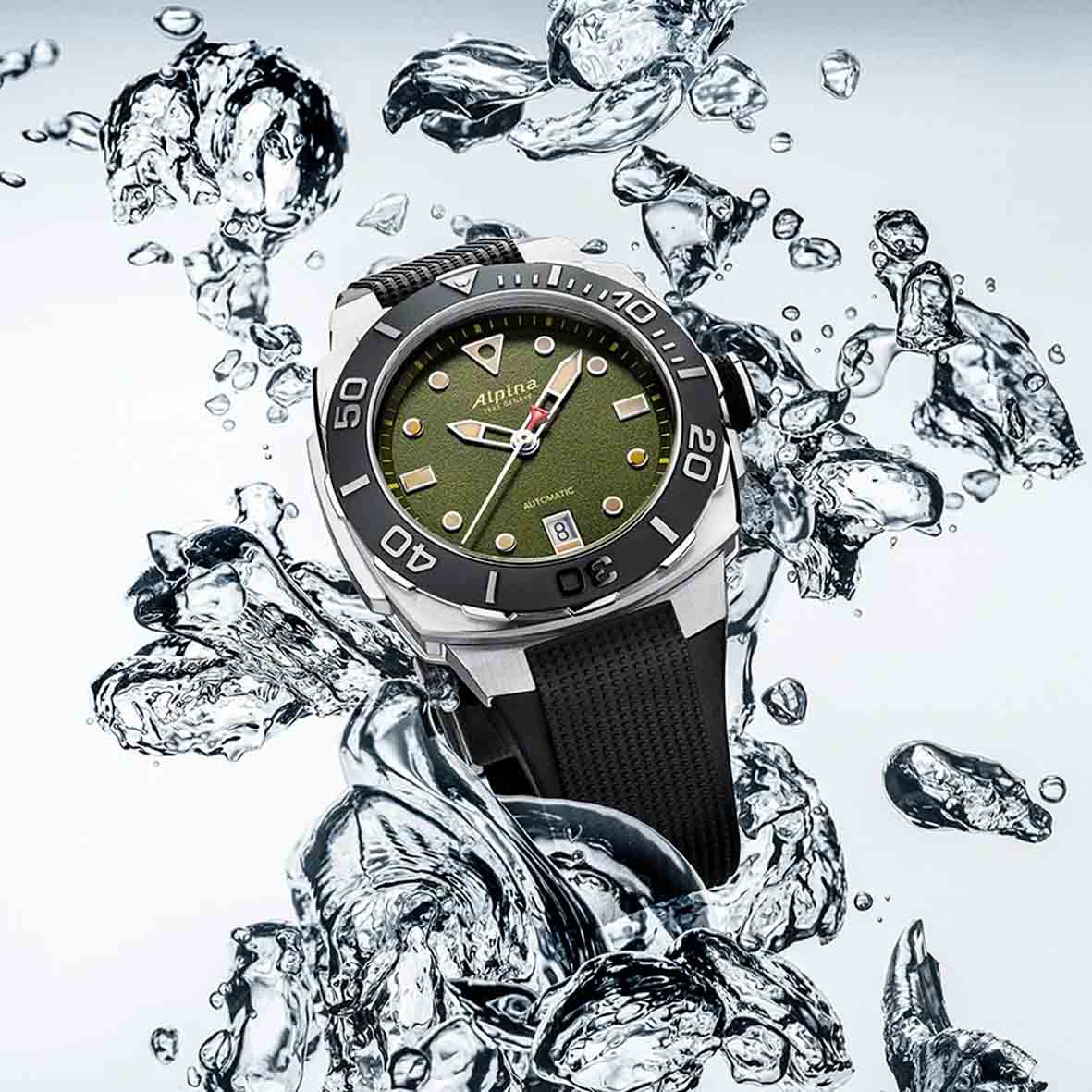 Animée par un mouvement automatique de calibre AL-525 , cette montre assure une mesure précise des heures, minutes, secondes et de la date. Le mouvement, avec sa fréquence de 28'800 alt/h , offre une réserve de marche de 38 heures. Le guichet de date est positionné à 6 heures , et les aiguilles et index argentés sont remplis d'un traitement lumineux "old radium" pour une lisibilité parfaite dans toutes les conditions. La couronne vissée et l'étanchéité jusqu'à 300 mètres confirment sa vocation de montre de plongée haute performance