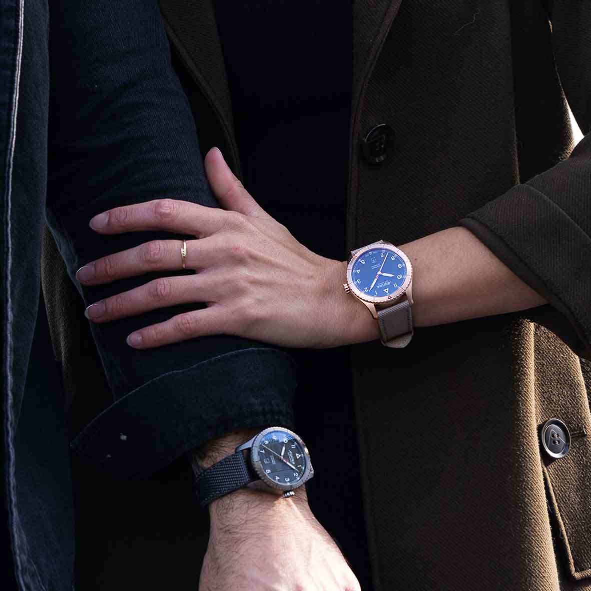 Le boîtier en acier inoxydable brossé et poli, composé de deux parties, offre un équilibre parfait entre finitions mates et brillantes.