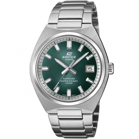Le cadran dégradé vert de cette Casio Edifice incarne la sobriété intemporelle, tandis que son verre saphir anti-rayures garantit une clarté de lecture impeccable au quotidien. Avec une étanchéité à 10 bars (100 mètres), cette montre unisexe vous accompagne dans toutes vos aventures, du bureau aux loisirs aquatiques. Son bracelet en acier inoxydable solide se ferme par un fermoir à triple boucle déployante à simple pression, assurant confort et sécurité.