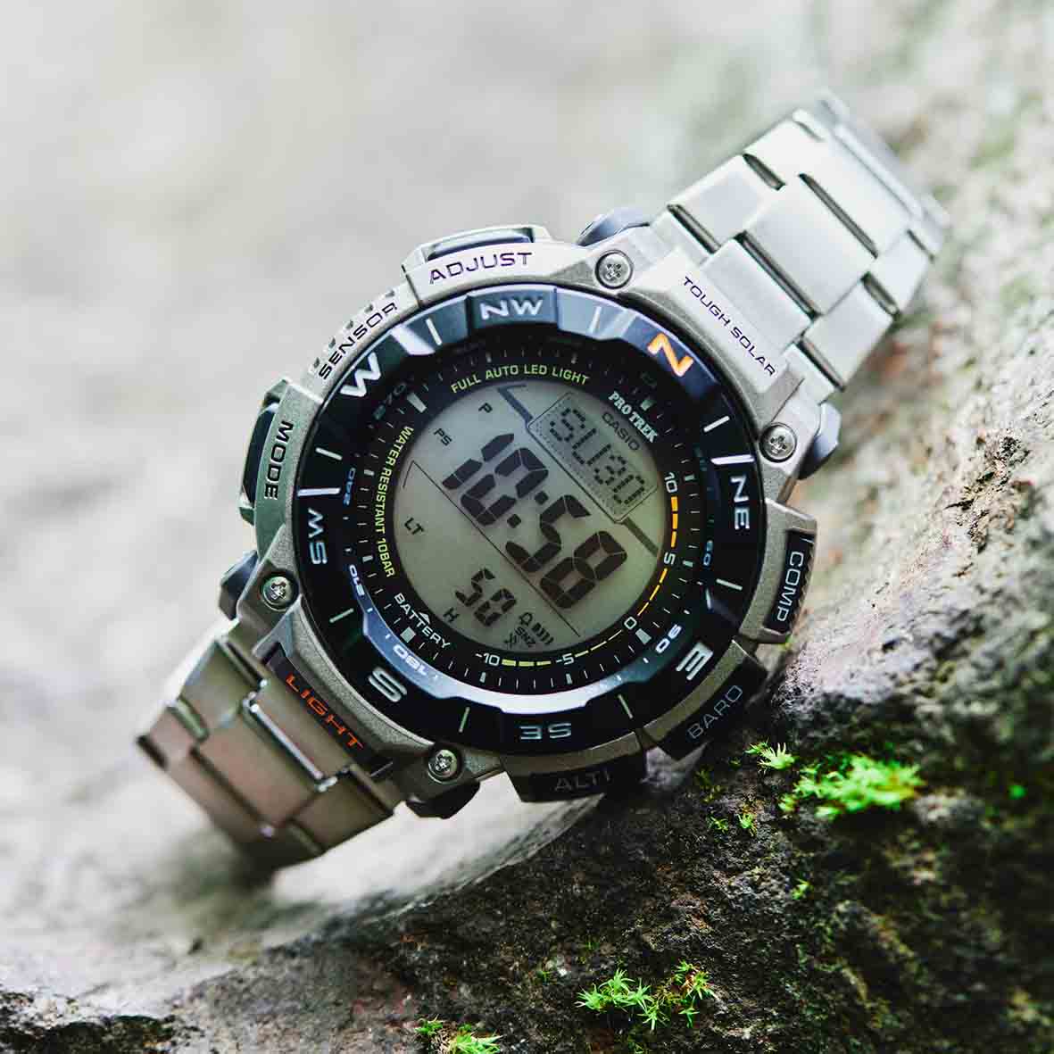Sortez en plein air avec une PRO TREK à énergie solaire dont les matériaux respectent l'environnement.