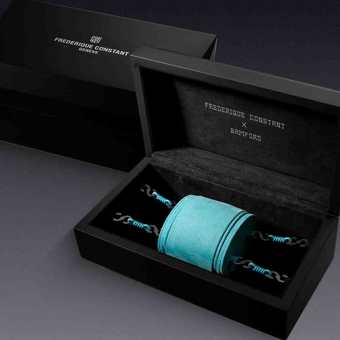 Limitée à seulement 100 pièces, elle réinterprète les codes esthétiques emblématiques de Bamford noir intense, contrastes marqués, touches turquoise vibrantes tout en conservant la précision et le raffinement propres à Frédérique Constant.