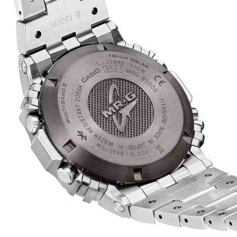 La finition en carbure de titane confère à la MRG-B5000D une superbe brillance métallique, et le revêtement en carbone-diamant amorphe (CDA) appliqué sur le boîtier et le bracelet permet d'obtenir la teinte noire emblématique du premier modèle G-SHOCK, maintenant en métal.