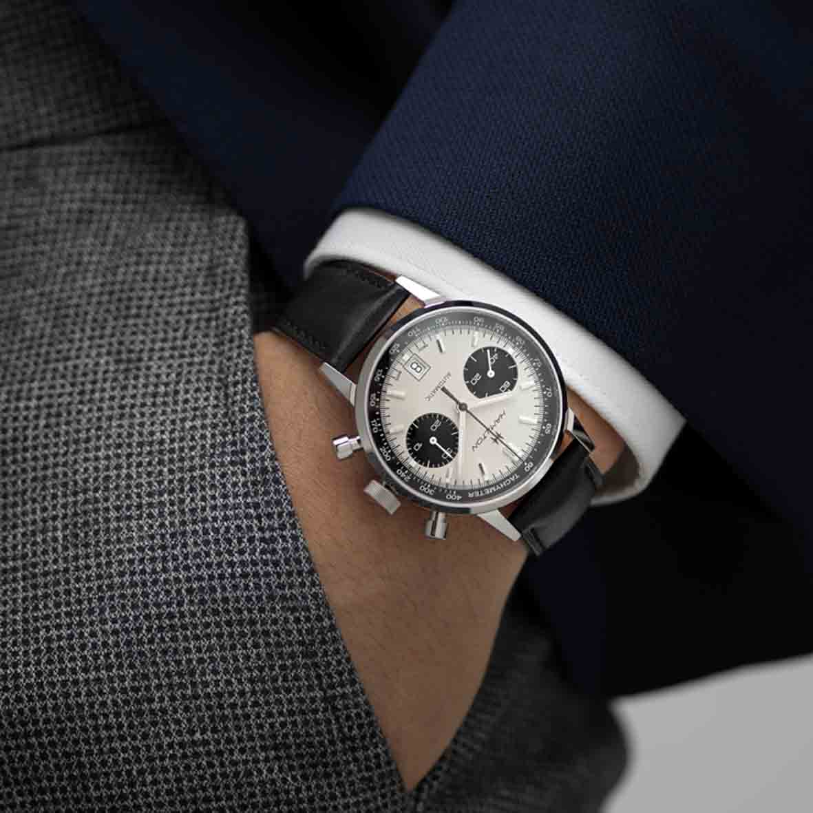 La montre Hamilton Intra-Matic Auto Chrono, au look à la fois sportif et classique, est la réinterprétation moderne d’un modèle emblématique datant de 1968.
