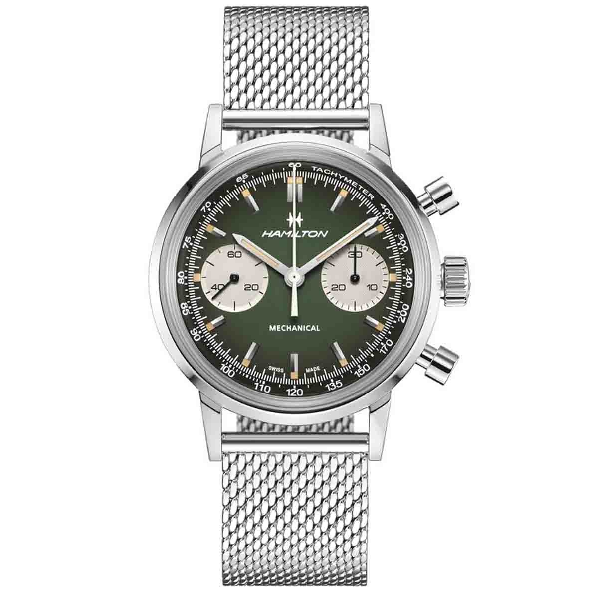 La Montre Hamilton American Classic Intra-Matic Chronograph est animée par un mouvement mécanique à remontage manuel, le calibre H-51, offrant une généreuse réserve de marche de 60 heures.