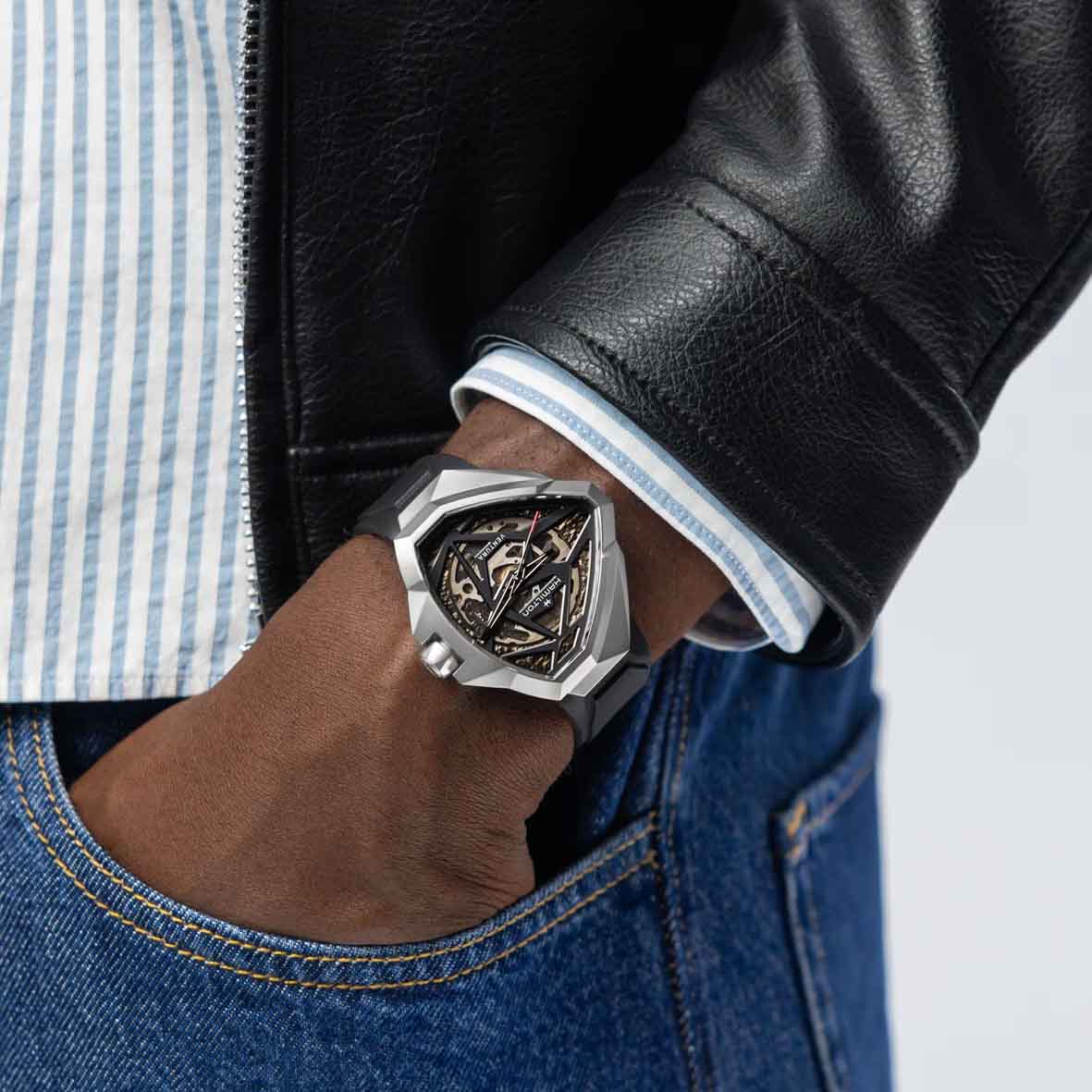 La Ventura Edge Skeleton est une montre résolument contemporaine, pensée pour les amateurs de design singulier et de haute horlogerie moderne.