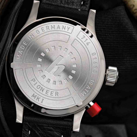 Le PIONEER Mk I est une réplique du "Calibre 40", le premier chronographe de précision produit par Hanhart en 1938.