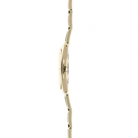 Cette montre pour femme allie prestige et sophistication grâce à son boîtier en acier 316L avec revêtement PVD or jaune, offrant un éclat raffiné et une grande résistance.