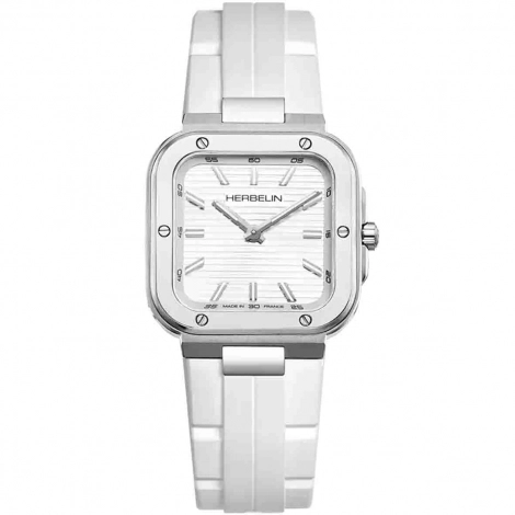 Son boîtier en acier carré, d’inspiration néo-vintage, s’allie à un bracelet en élastomère FKM blanc, un matériau doux, souple et agréable au porté.