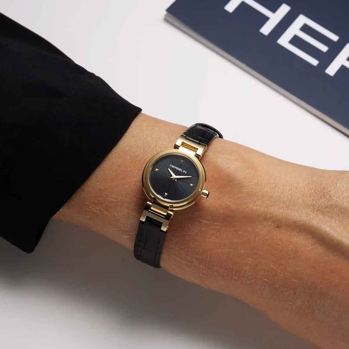 Montre Herbelin Lady H – Quartz – PVD Or Jaune & Cuir Noir