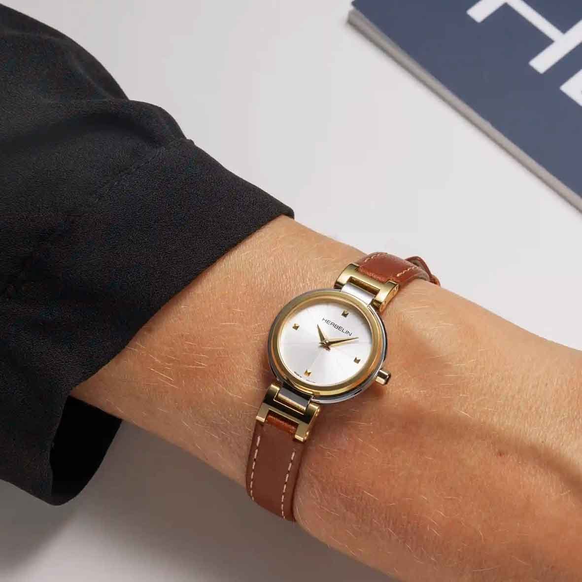 Montre Herbelin Lady H – Quartz – Acier & PVD Or • Cuir Camel