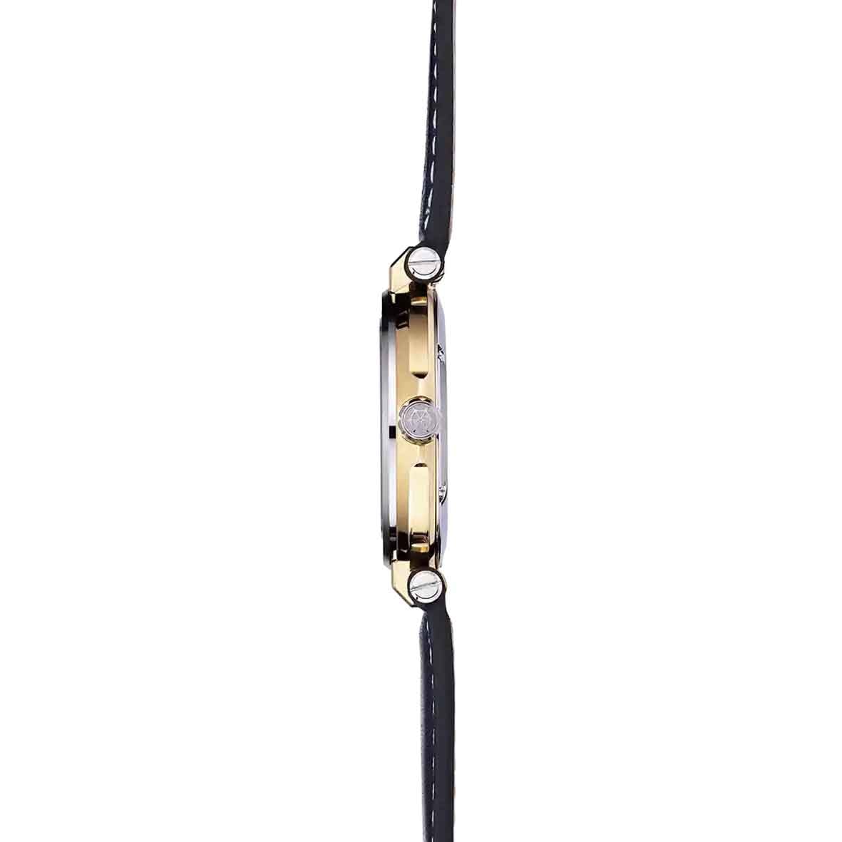 Elle est dotée du mouvement quartz suisse Ronda 6004.D, reconnu pour sa fiabilité et sa précision, avec petite seconde à 6h.