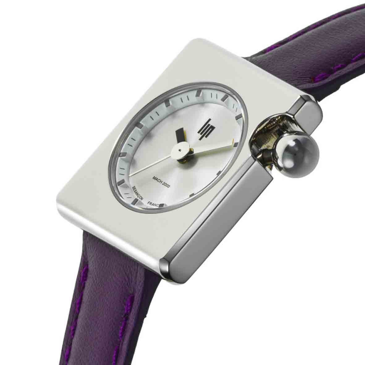 Cette montre LIP Mach 2000 Mini Square se distingue par son design résolument moderne et son boîtier en acier inoxydable 316L poli.