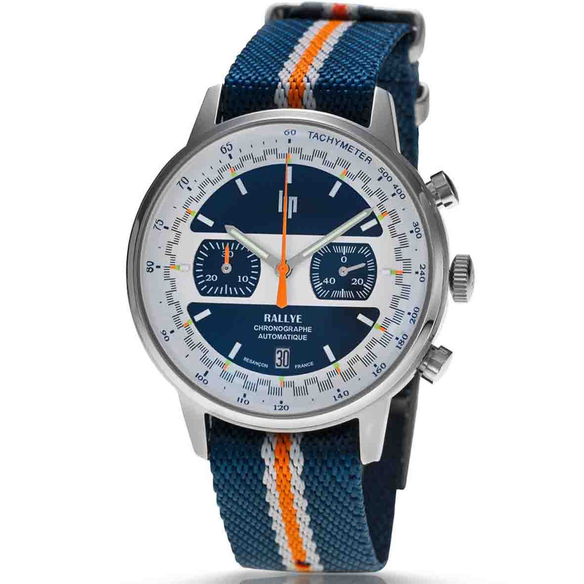 Montre Lip Rallye Chrono Auto Jacquard - Homme - cadran blanc et bleu- 42 mm - Acier 316L - 671823