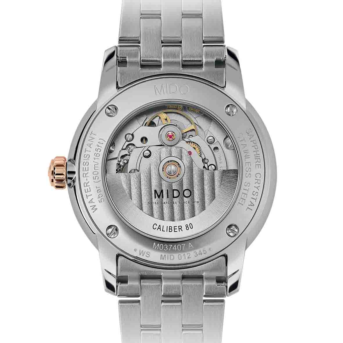 Le Calibre 80 de MIDO est un mouvement à remontage automatique nouvelle génération. Il offre jusqu’à 80 heures de réserve de marche, deux fois plus qu’un mouvement classique. Il est également disponible en version chronomètre, officiellement certifié par le COSC (Contrôle Officiel Suisse des Chronomètres) pour garantir sa précision supérieure.