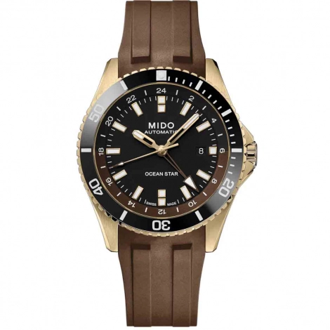 Son bracelet en silicone marron, à la fois confortable et résistant, se ferme par une boucle déployante dotée d'une extension pour la plongée, assurant un maintien parfait. Avec la Mido Ocean Star GMT, chaque seconde est une promesse d'exploration et de style.
