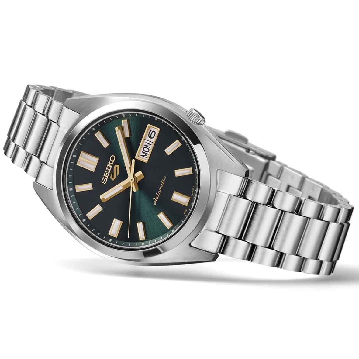 Étanche jusqu’à 10 bar et résistante aux champs magnétiques jusqu’à 4,800 A/m, cette Seiko 5 SNXS est aussi robuste qu’élégante.