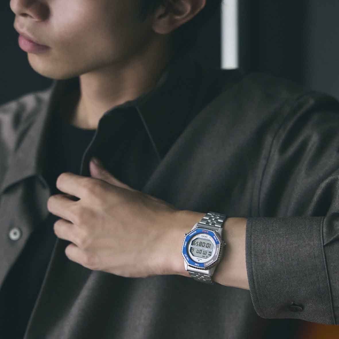 L’écran LCD reprend la typographie emblématique du modèle d’origine, tout en y ajoutant des détails modernes comme l’indicateur AM/PM et l’affichage du niveau de charge de la batterie.