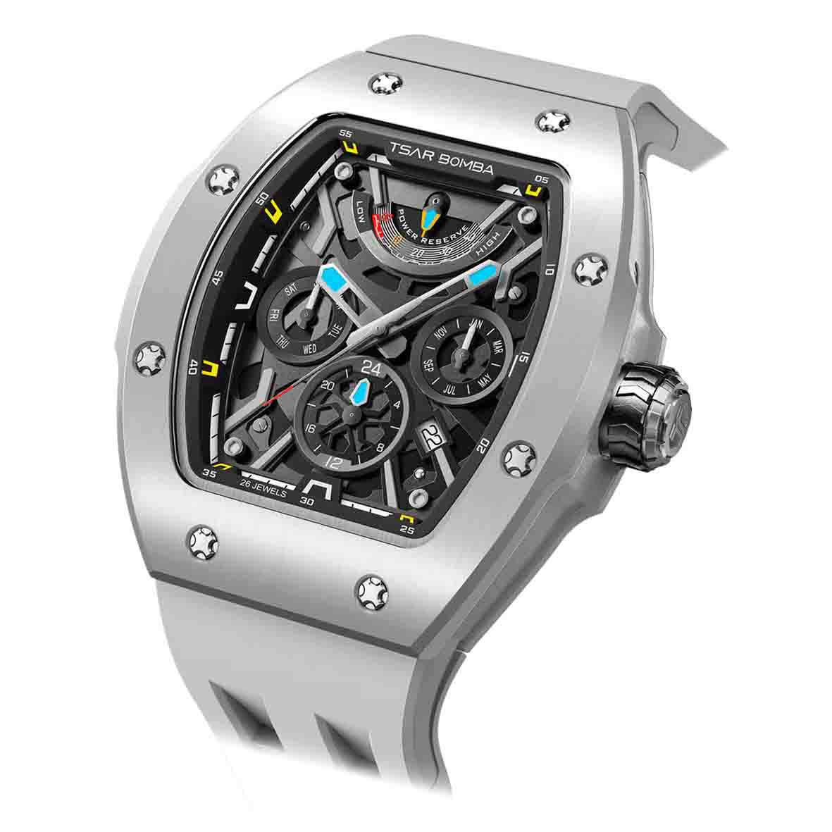 La Montre Tsar Bomba Collection Atomic TB8222C3 est la quintessence d’un style futuriste et d’une expertise horlogère avancée, pour les passionnés en quête d’exclusivité et de performance.
