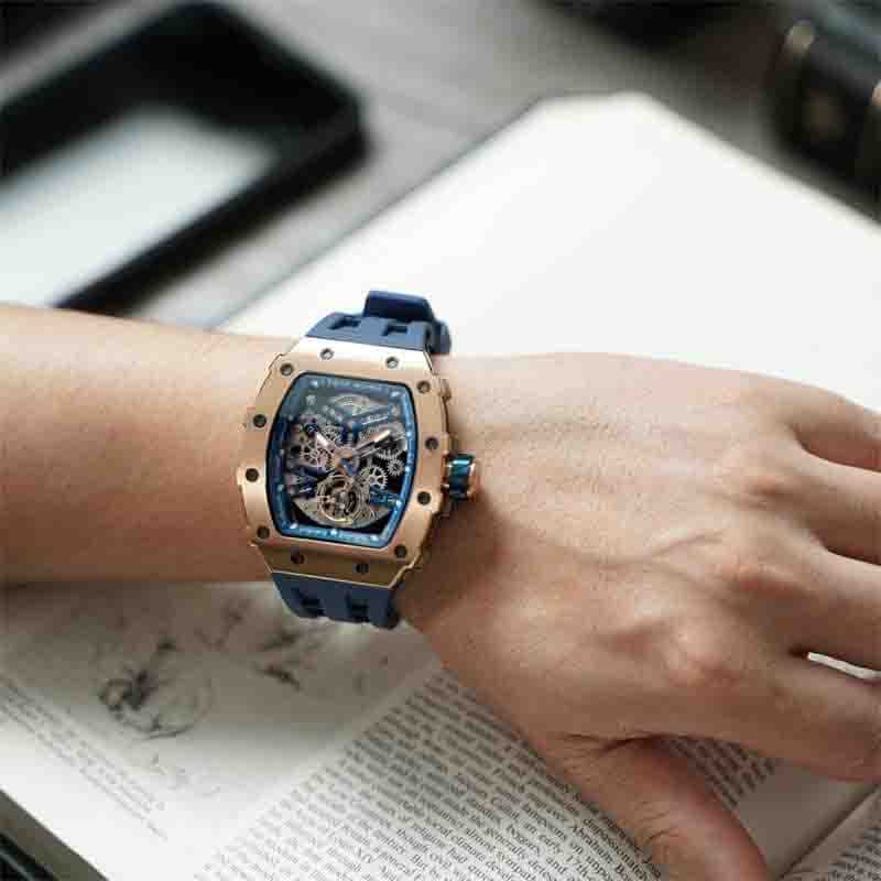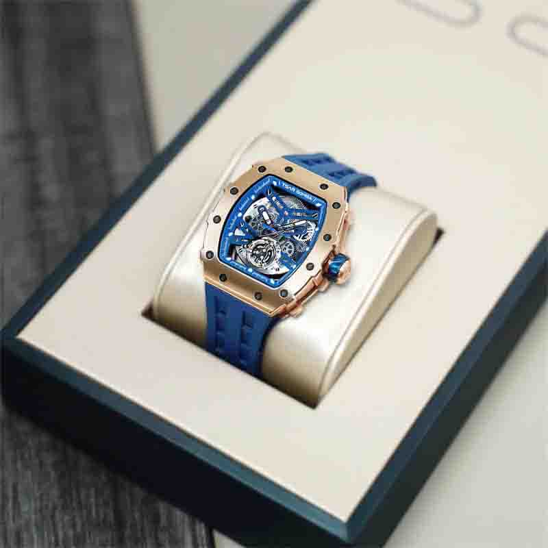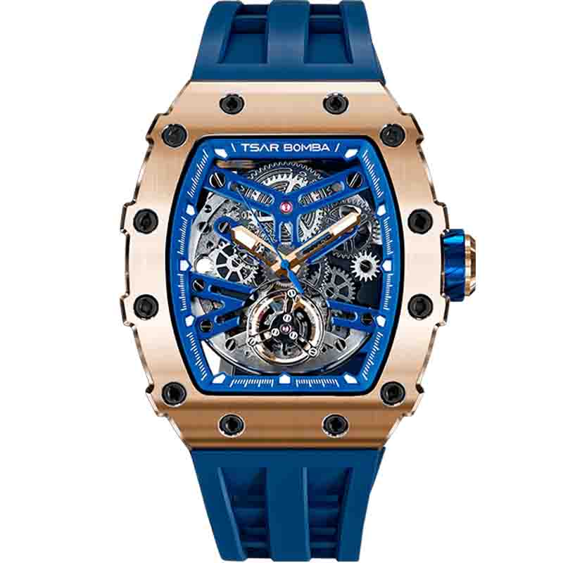 Avec la Tsar Bomba TB8208A, plongez dans l'univers fascinant de l'horlogerie mécanique grâce à son cadran squelette, dévoilant toute la complexité et le raffinement de son mouvement automatique.