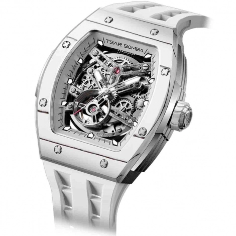 Cette architecture cyber-urbaine crée une tension visuelle captivante, transformant votre poignet en véritable galerie de mécanique horlogère. Les dimensions généreuses (44,8 x 51,5 x 15,50 mm) affirment sans détour l'identité de cette montre de rêve pour les passionnés d'horlogerie. Le design squelette libère complètement l'impact visuel du mécanisme automatique Miyota. À travers le verre saphir transparent, admirez chaque rouage, chaque battement de précision, la roue décorativéà sept heures dansant comme un moteur qui démarre. C'est une symphonie synchrone d'ingénierie microscopique révélée sous vos yeux, offrant un spectacle mécanique sans pareil.