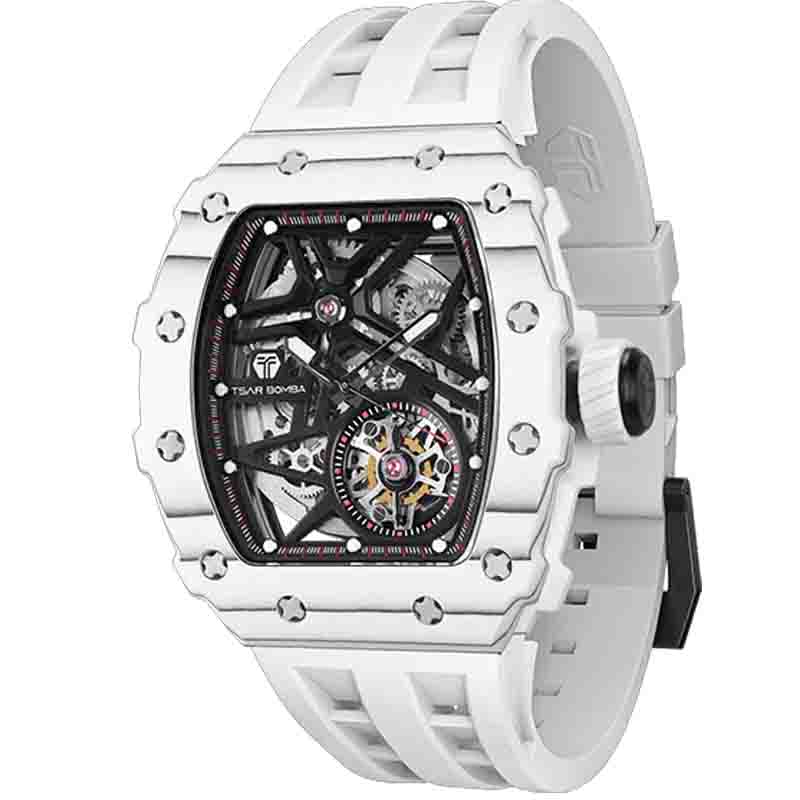 Avec la Tsar Bomba TB8209CF, plongez dans l'univers fascinant de l'horlogerie mécanique grâce à son cadran squelette, dévoilant toute la complexité et le raffinement de son mouvement automatique.