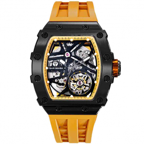 Le bracelet en silicone jaune, souple et résistant, doté d’une boucle ardillon sécurisée, assure un ajustement idéal pour toutes les activités. Son étanchéité de 5 ATM (50 mètres) la rend apte aux éclaboussures et au lavage des mains, vous accompagnant avec élégance dans votre vie urbaine et vos escapades. La Montre Tsar Bomba – Elemental Series Jaune est plus qu’un accessoire ; c’est un compagnon de chaque instant, un symbole de votre goût pour l’excellence et l’originalité.
