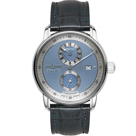 Plongez dans l’élégance avec cette montre Zeppelin, dotée d’un cadran bleu orné d’un motif embossé "Clous de Paris", rehaussé de chiffres et index noirs.